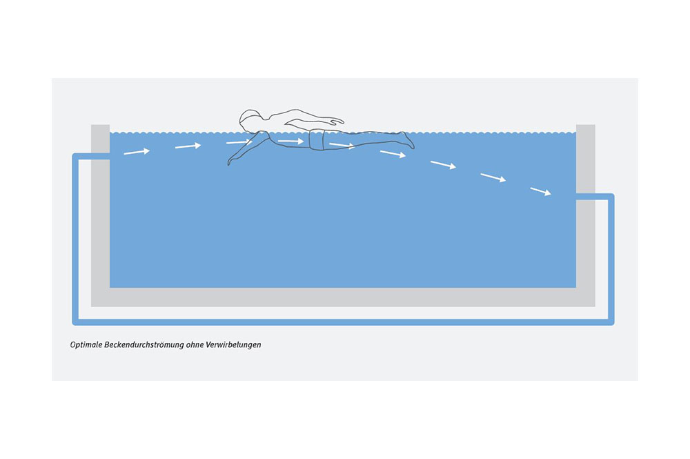 Wer gegen den Strom schwimmt, gewinnt an Kraft. Bei einer Gegenstromanlage strömt das Wasser auf einer Seite heraus und wird auf der anderen Seite angesaugt: so entsteht eine doppelte Wirkung. Die innovative FLAT-Stream-Technologie eignet sich optimal für sportlich-professionelle Schwimm-Trainingseinheiten, weil sie eine flache, kraftvolle und gleichmässige Strömung knapp unterhalb der Wasseroberfläche ohne Verwirbelungen erzeugt (180 – 540 m3/h).
