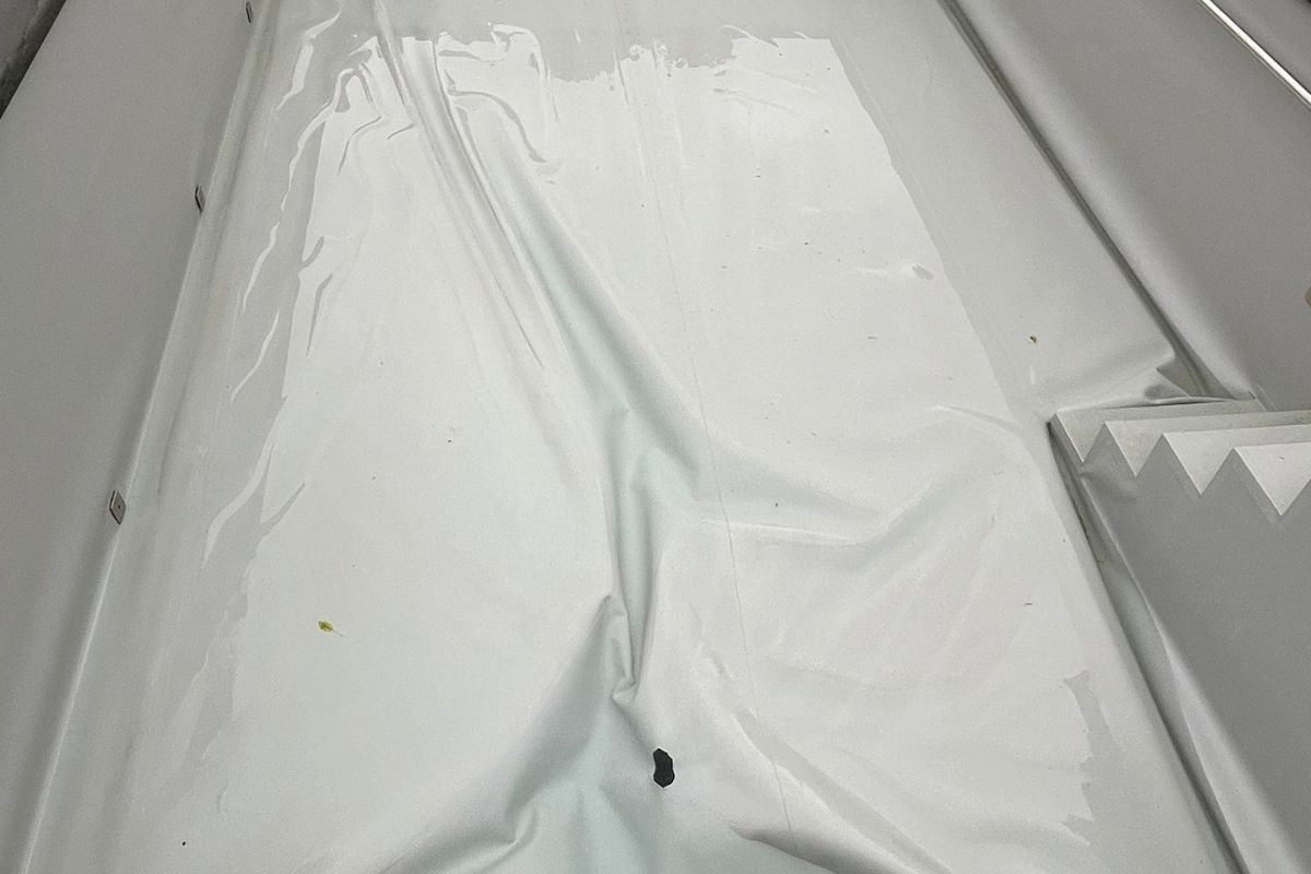 Statt die Folie komplett auszutauschen, haben wir uns für eine nachhaltige und kosteneffiziente Lösung entschieden: dieselbe Folie wurde mit viel Sorgfalt neu verlegt und professionell geglättet. Das Ergebnis spricht für sich — ein Poolboden wie neu, vollkommen faltenfrei und technisch einwandfrei (siehe zweites Bild).