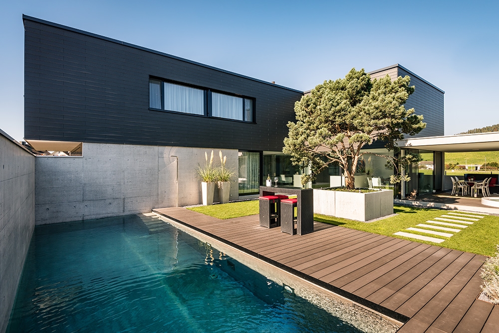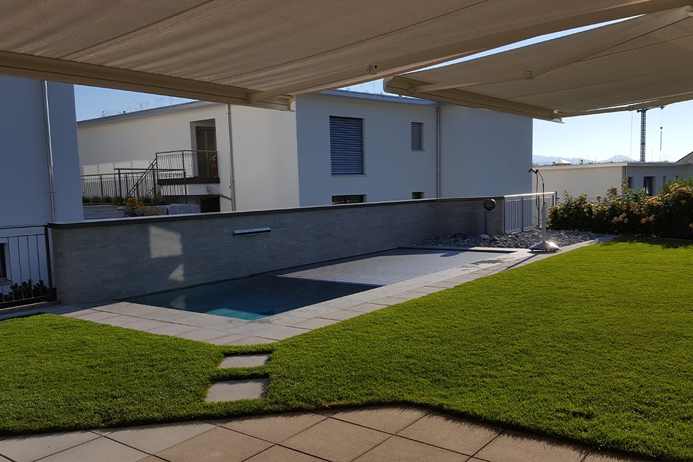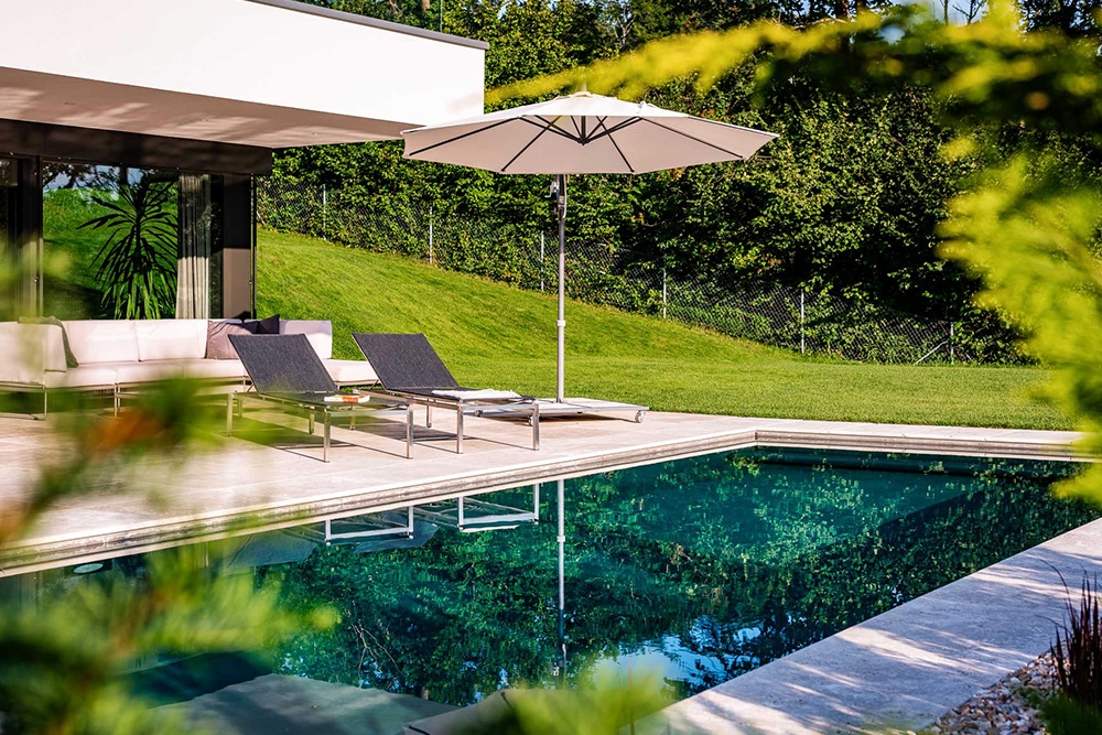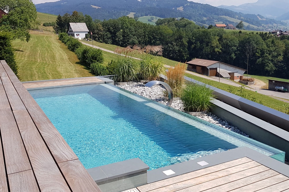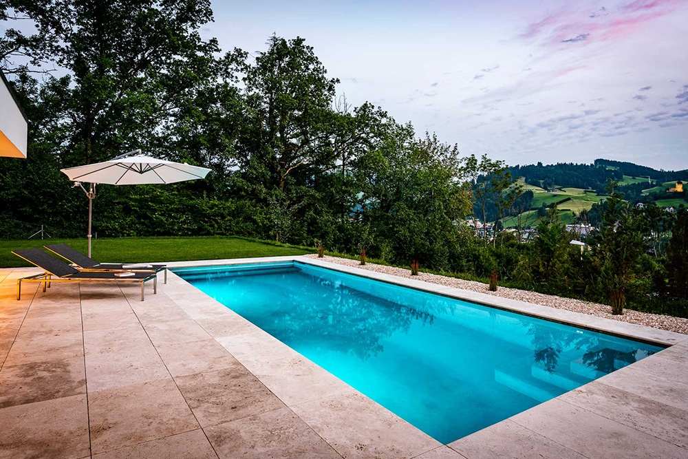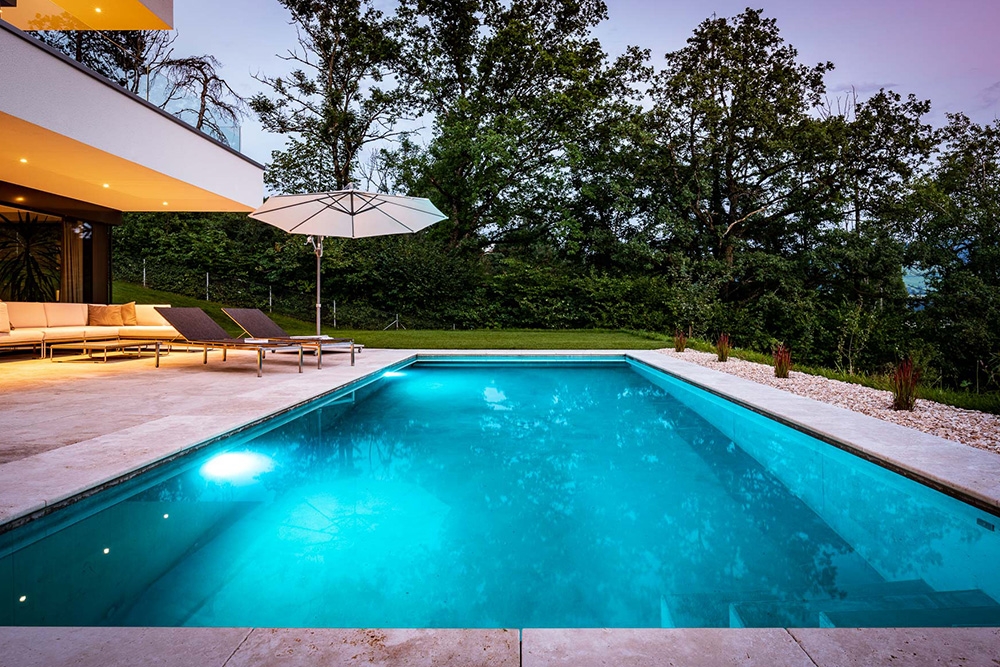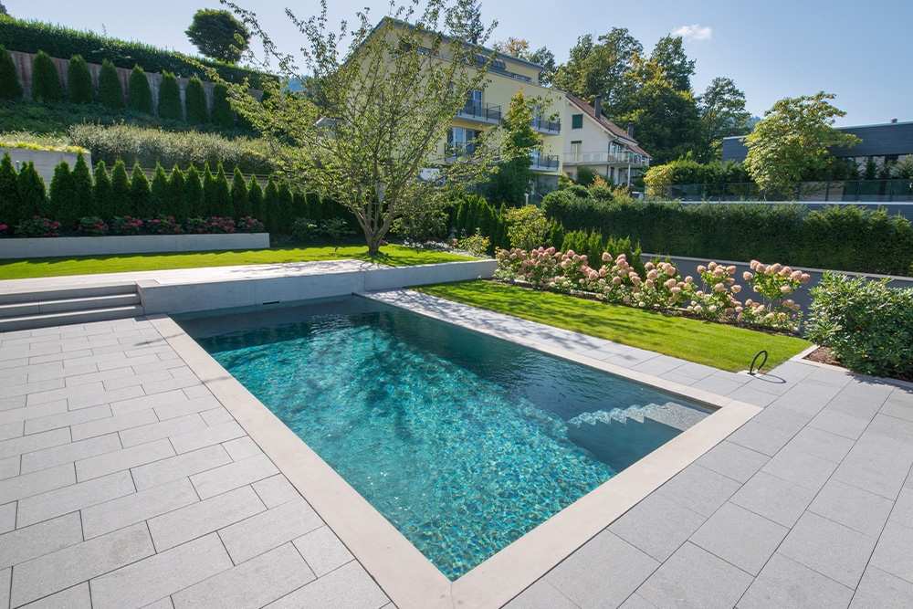 Wer grenzenlose Individualität schätzt, der entscheidet sich für ein Betonbecken. Von der Form bis zur Ausstattung können bei diesem Schwimmbad Wünsche und bereits vorhandene Gebäudestrukturen berücksichtigt werden. Die massive Bauweise sowie die Vielfalt an Ausbaumöglichkeiten und Materialien versprechen Freude für viele Jahre.