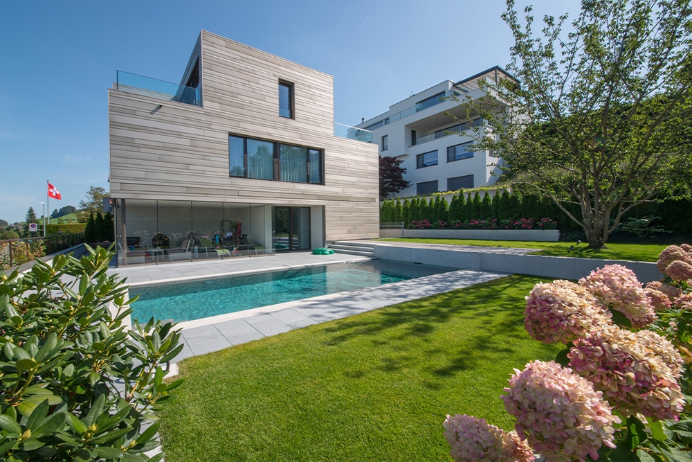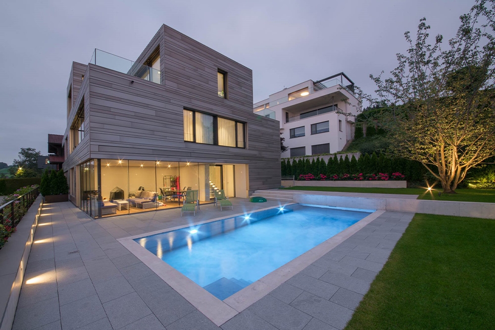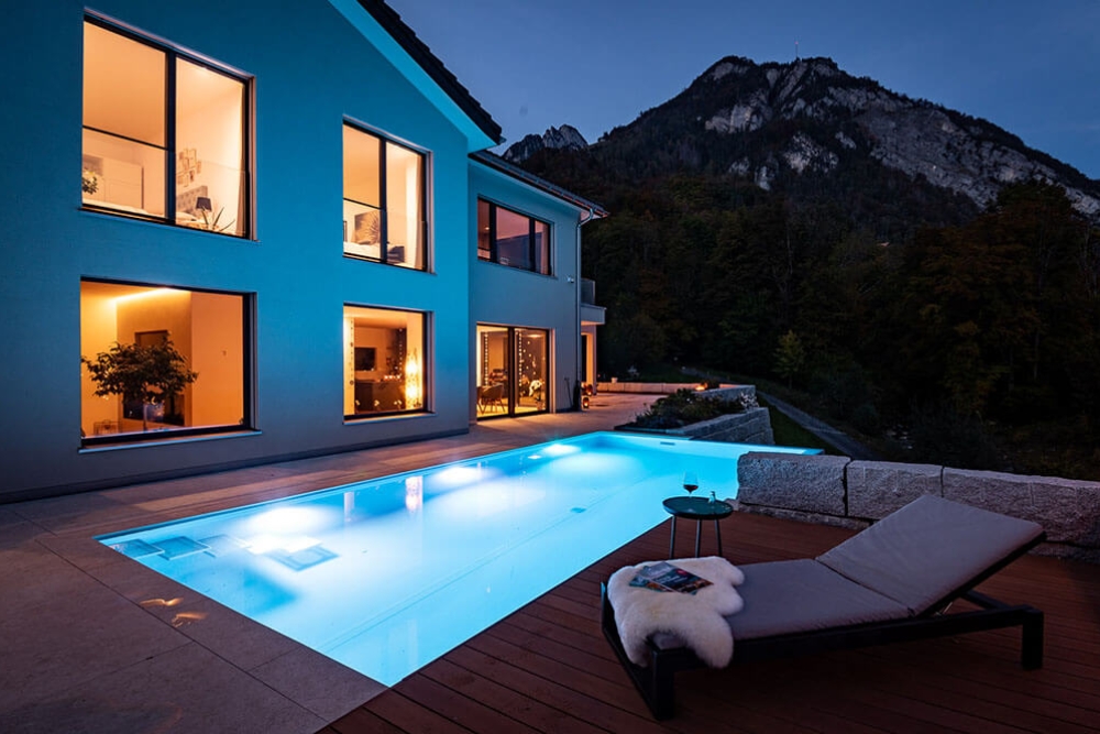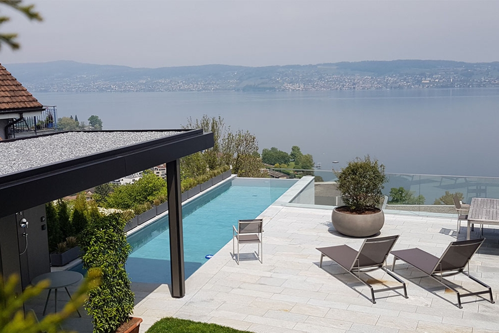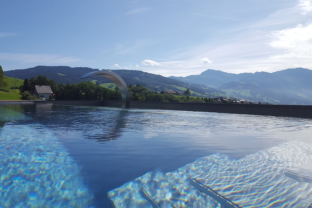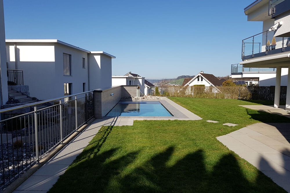 Wer grenzenlose Individualität schätzt, der entscheidet sich für ein Betonbecken. Von der Form bis zur Ausstattung können bei diesem Schwimmbad Wünsche und bereits vorhandene Gebäudestrukturen berücksichtigt werden. Die massive Bauweise sowie die Vielfalt an Ausbaumöglichkeiten und Materialien versprechen Freude für viele Jahre.